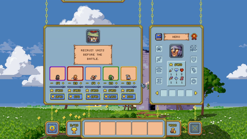 Another important change is the glory system. Now the number of units available for purchase is limited not by their availability in the store, but by the amount of glory required for hiring. Unlike gold, glory is not spent, but acts as a limiter on the maximum number of units of one type. It encourages the player to create diverse army compositions instead of buying one strongest unit. The amount of glory grows after each victory.